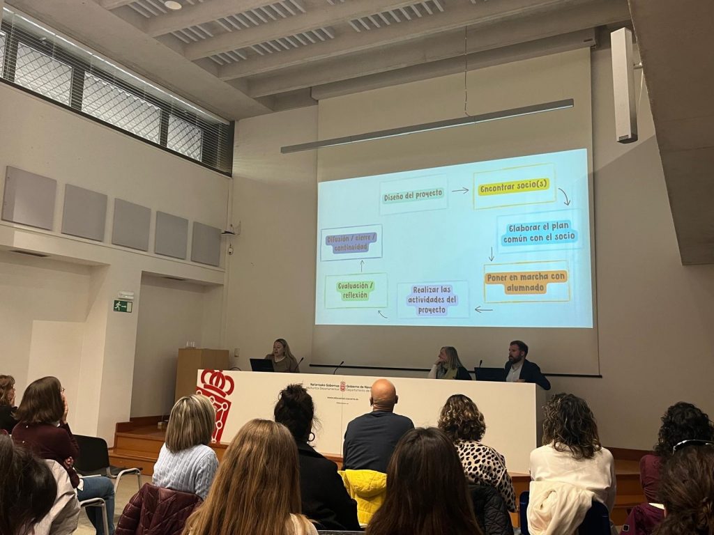 La jornada arrancó con la intervención de Roman Torre, Jefe de la Sección de Programas de Lenguas Extranjeras y Elisa Echenique, asesora del Negociado de Proyectos Europeos del Departamento de Educación y representante eTwinning de la Comunidad, quienes dieron la bienvenida a los asistentes y pusieron en valor la trayectoria de eTwinning en Navarra.